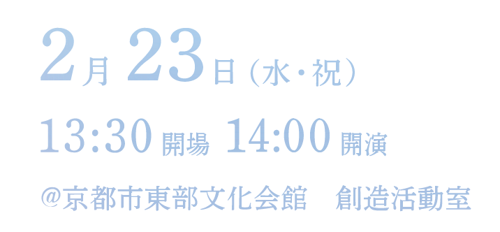 本日は「雪解けコンサート 2022」にご来場いただき、 誠にありがとうございます。京都大学で知り合った私たちは、 サークルの垣根を越えてアンサンブルを重ねてきました。 本日のプログラムは「春の兆し」をテーマに、人気の名曲を 選んでいます。まだまだ寒い日が続きますが、音楽の温かさ を少しでもお届けできたらと思います。どうぞ最後までごゆ っくりお楽しみください。